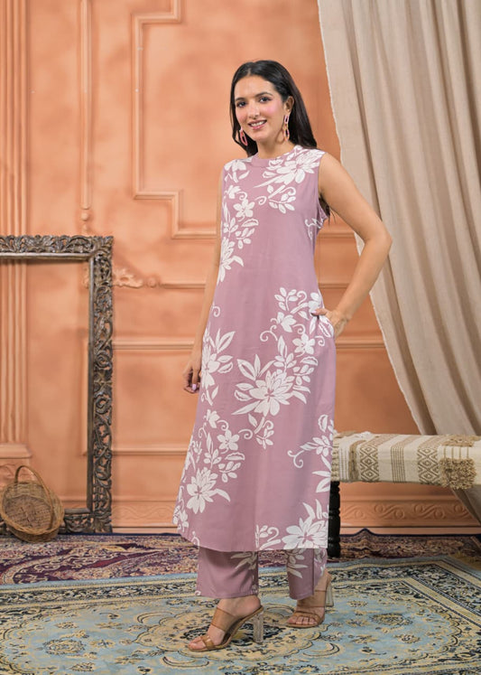 Lavender Lilac Ikat Printed Two-Piece Lawn Suit